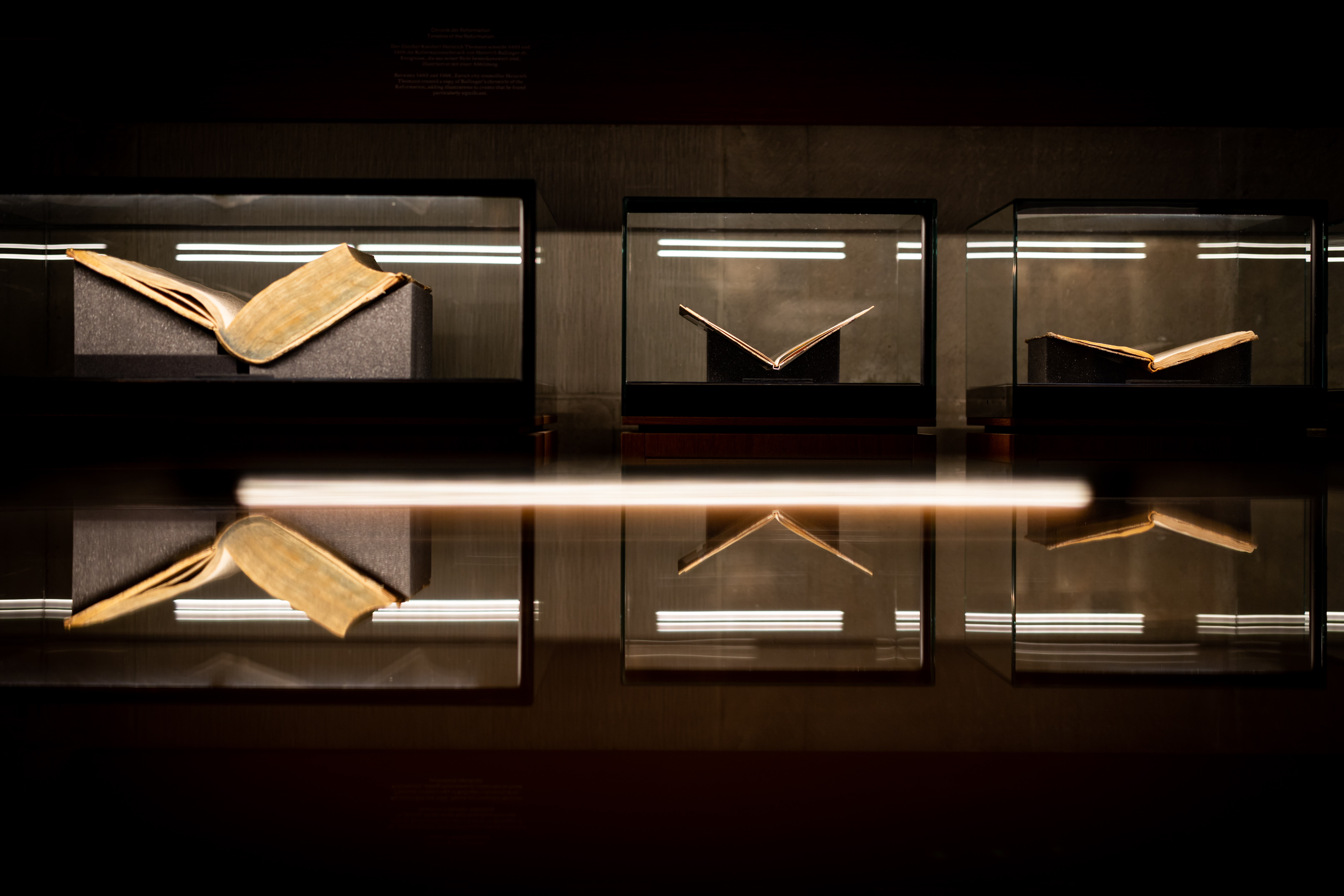 V galerii Grossmünsteru se nachází jedinečná sbírka Biblí a spisů z období reformace před 500 lety.
