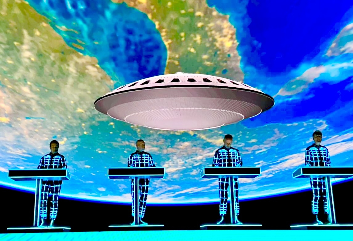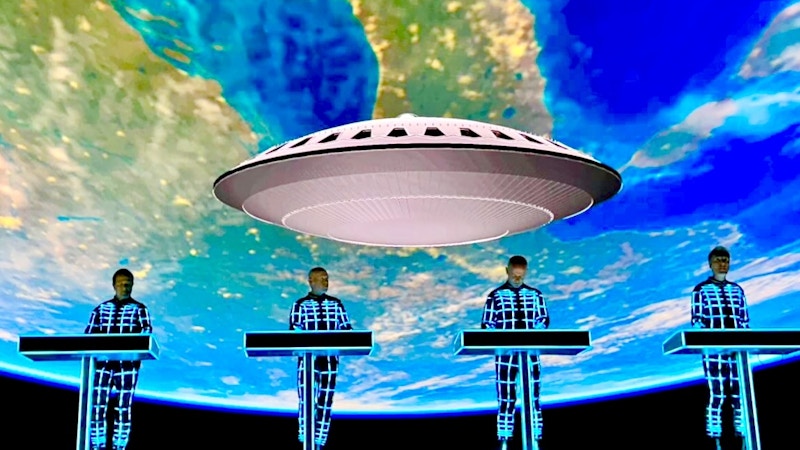 Kraftwerk na svých koncertech kombinují elektronickou hudbu s počítačovými animacemi, videem a performancí a vytvářejí skutečný "Gesamtkunstwerk"!
