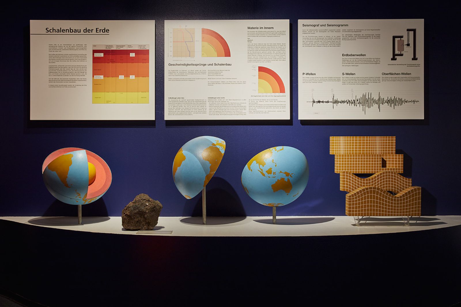 Die vielfältigen geologischen Erscheinungsformen an der Erdoberfläche wie Gebirge und ihre typischen Gesteine, Ebenen und Wüsten, der Kontinentalschelf mit seinen markanten Korallenriffen oder die geheimnisvolle Tiefsee und einige ihrer Bodenschätze werden ebenfalls in der Ausstellung thematisiert.