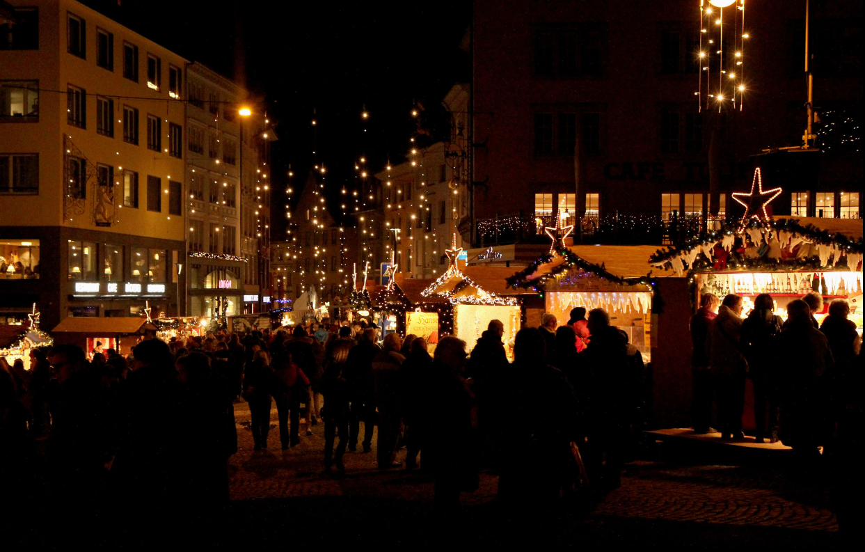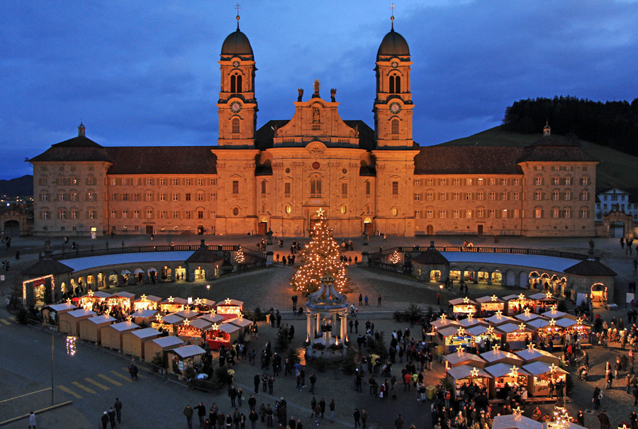 El mercado navideño frente al fantástico telón de fondo de la abadía de Einsiedeln y a lo largo de toda la calle principal tiene un encanto especial.