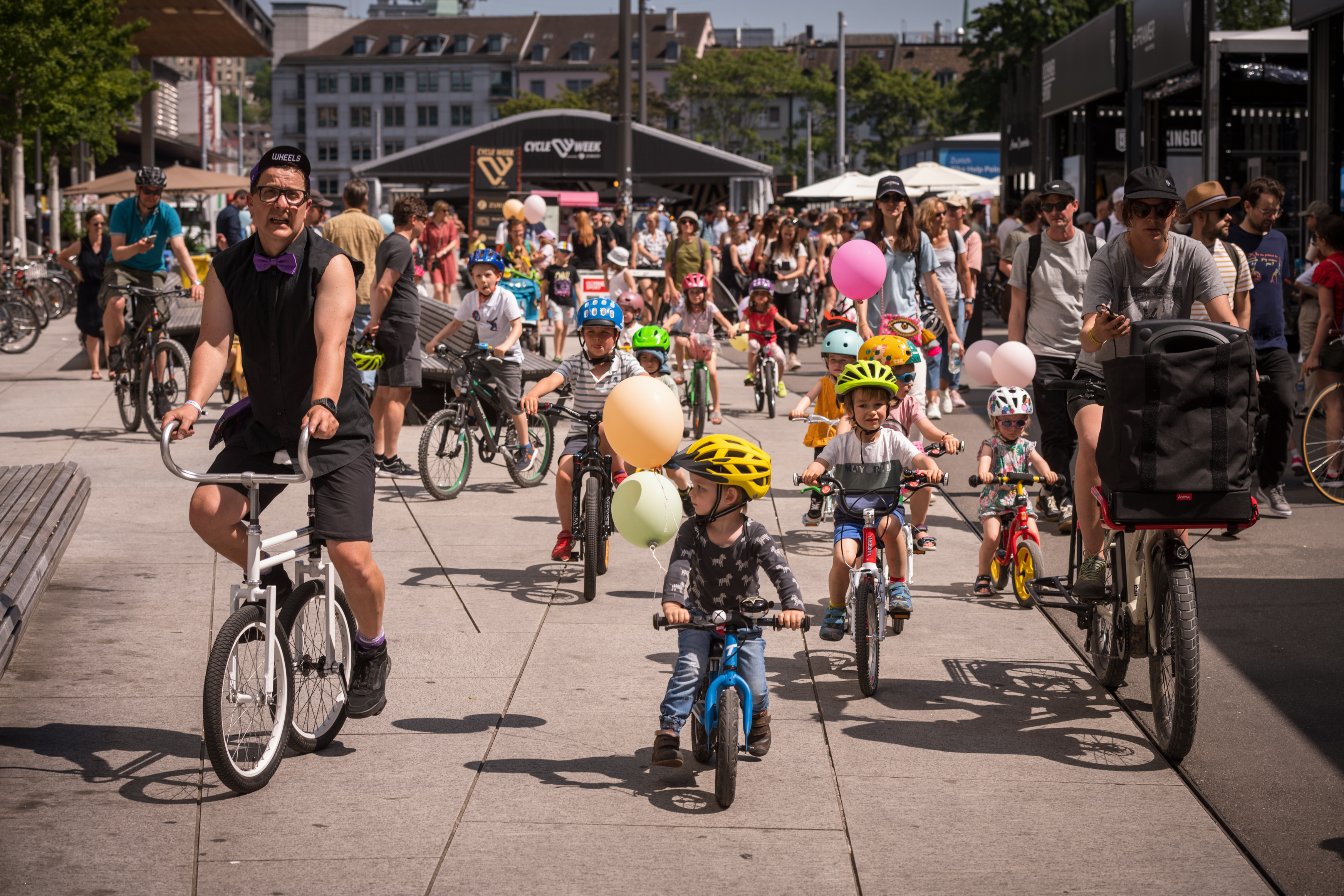 La Cycle Week, la fiesta nacional de la bicicleta, abarca todo el mundo de la bicicleta. En la Europaallee, cerca de la estación central de ferrocarril de Zúrich, y en Brunau, en la misma ciudad, el festival presenta nuevas tendencias y desarrollos, pero también todo lo probado y apreciado por los aficionados a la bicicleta. Entretiene, imparte conocimientos, anima a la gente a montar en bicicleta y refuerza la convicción de los ciclistas habituales. El Festival de la Semana de la Bicicleta va directamente a la gente, a usted. Ya sea en el triángulo Europaallee, Lagerstrasse, Kasernenstrasse, en el Brunau detrás del Saalsporthalle o en el Jumppark detrás del centro comercial Sihlcity. 100 talleres y novedades ciclistas le esperan en más de 120 stands.