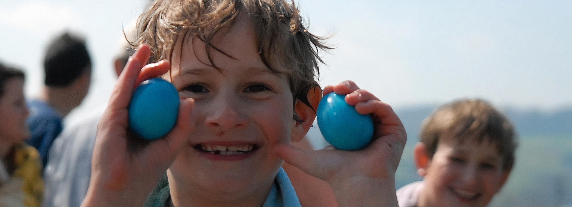 Ou colorir ovos ou ... nadar no lago. Claro que a água ainda está fria. Cerca de 5 a 13 graus, mas é disso que se trata. No Niederuster Seebadi, desde o cais até à plataforma de mergulho (20 metros) e vice-versa. Todos apanham um ovo azul. De volta à praia, há sopa de ovos quente, licor de ovos e coberturas de ovos.
